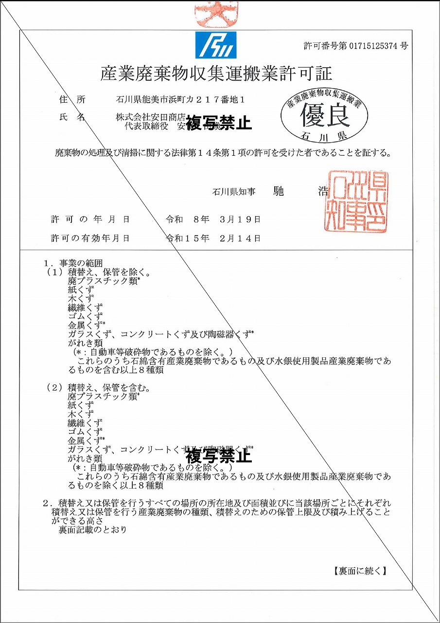 令和8年3月19日に産業廃棄物収集運搬業の優良認定を受けました!